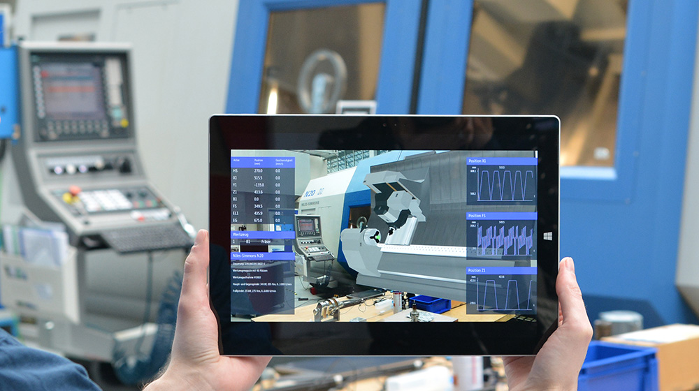 Direkte Anbindung an Ihre Maschinensteuerung. Damit können Sie Ihre realen Prozesse besser überwachen, die Bewegung Ihrer Maschine und Anlage jederzeit nachverfolgen und sogar Ihre Maschine über Ihre AR-Anwendung steuern.